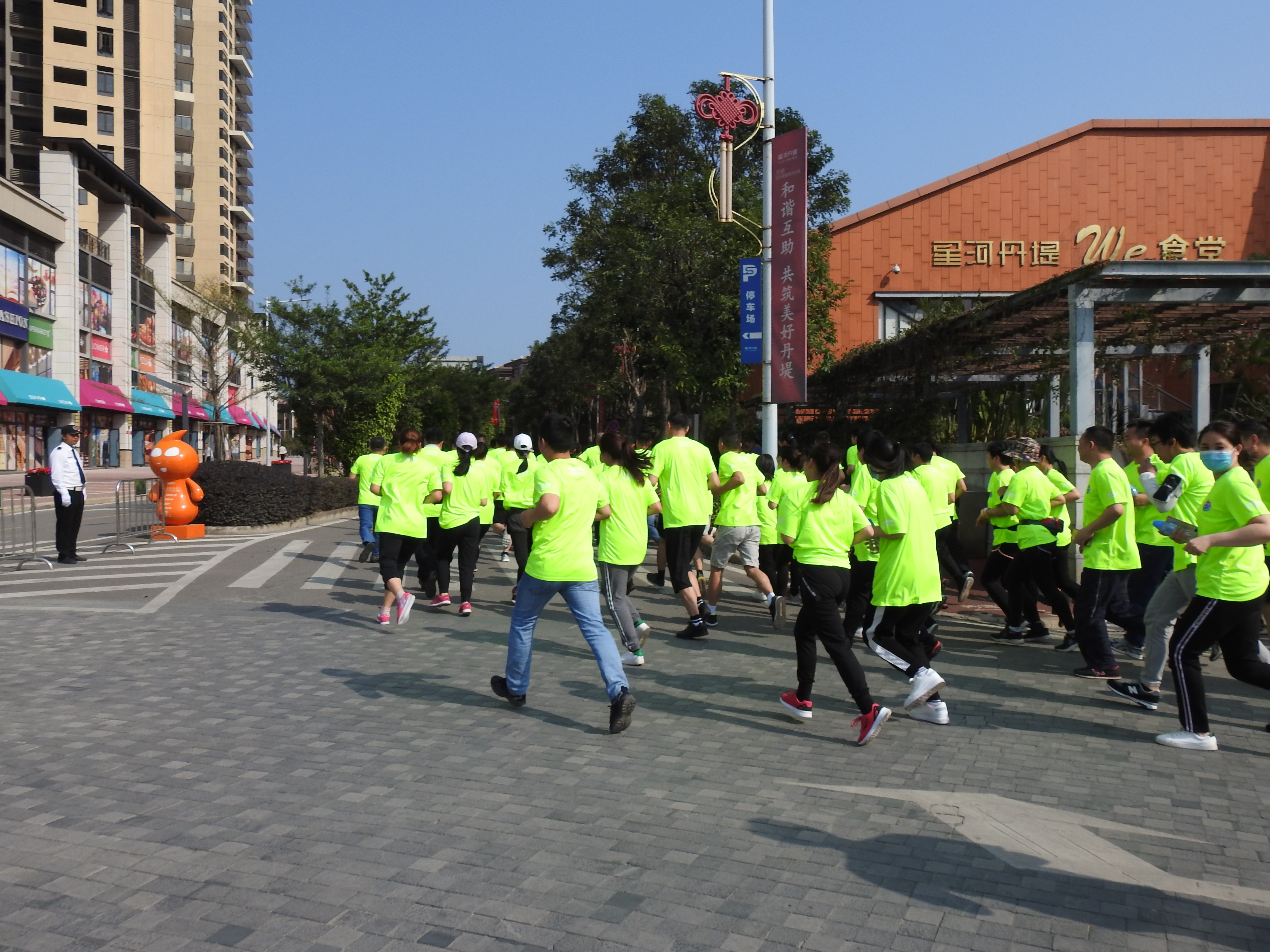 随着一声发令枪响,悦跑赛正式启程,悦跑者身着荧光色战衣迈出坚定不移的奔跑脚步,在5公里赛程上大家你追我赶,互相加油,互相鼓励,向着终点奋力奔跑。
