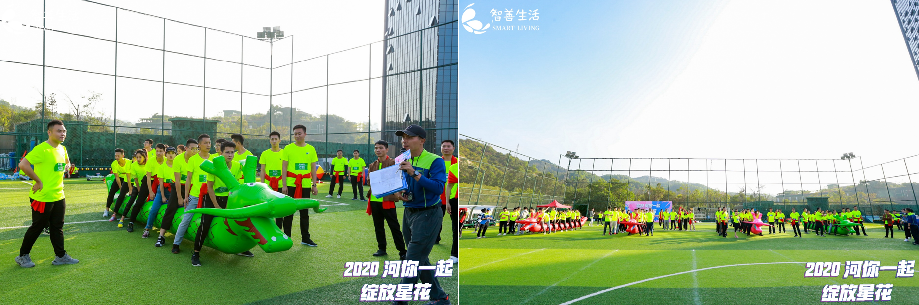 在1月11日这个和风暖阳的下午,星河智善生活2020员工迎春运动嘉年华暨年度优秀表彰在星河·领创天下足球场火热启幕!此次活动分为年度优秀表彰和趣味运动竞赛两大环节,现场来自全国各地的三百余名员工代表共同参加活动。