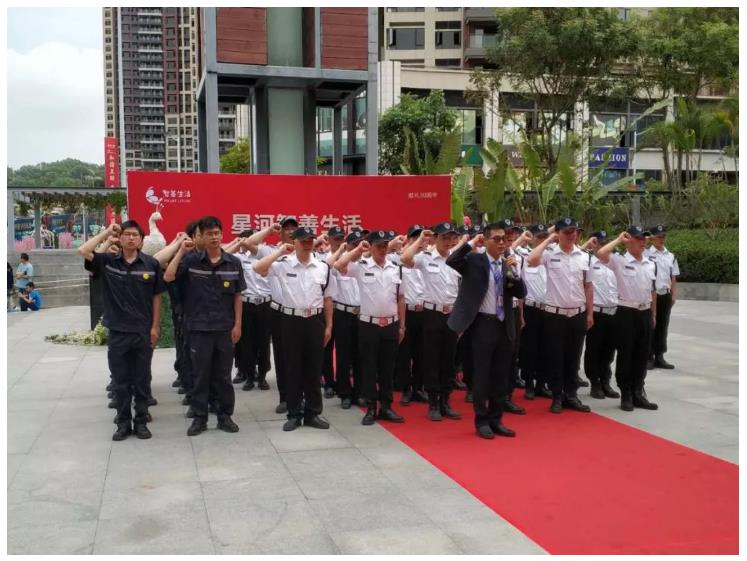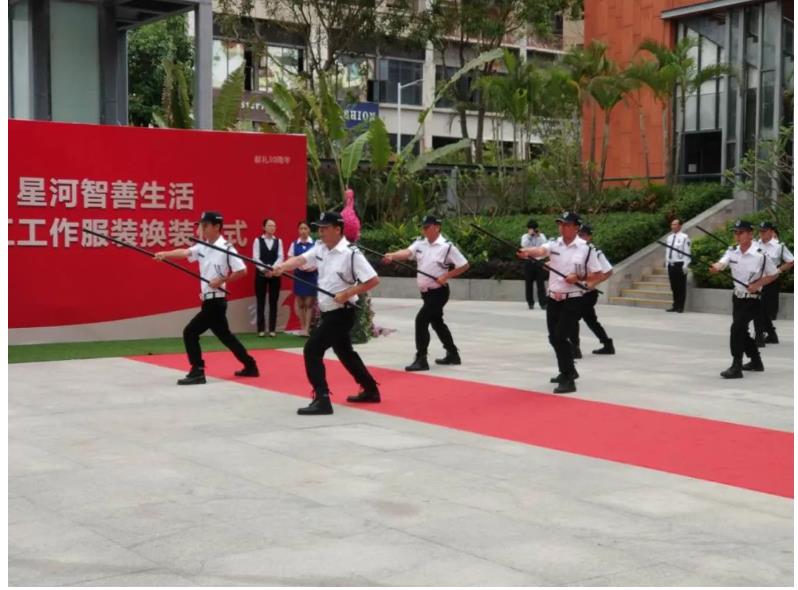 换装仪式以“宣誓”活动作为尾声,由智善生活惠州分公司副总经理刘常伟带领全体员工宣誓,刘总手举拳头,一字一句郑重地宣誓:我宣誓,我以身穿智善生活新工装为荣,绝不辜负公司使命,为业主提供最优质的服务!庄严宏伟的声音响彻云霄。
