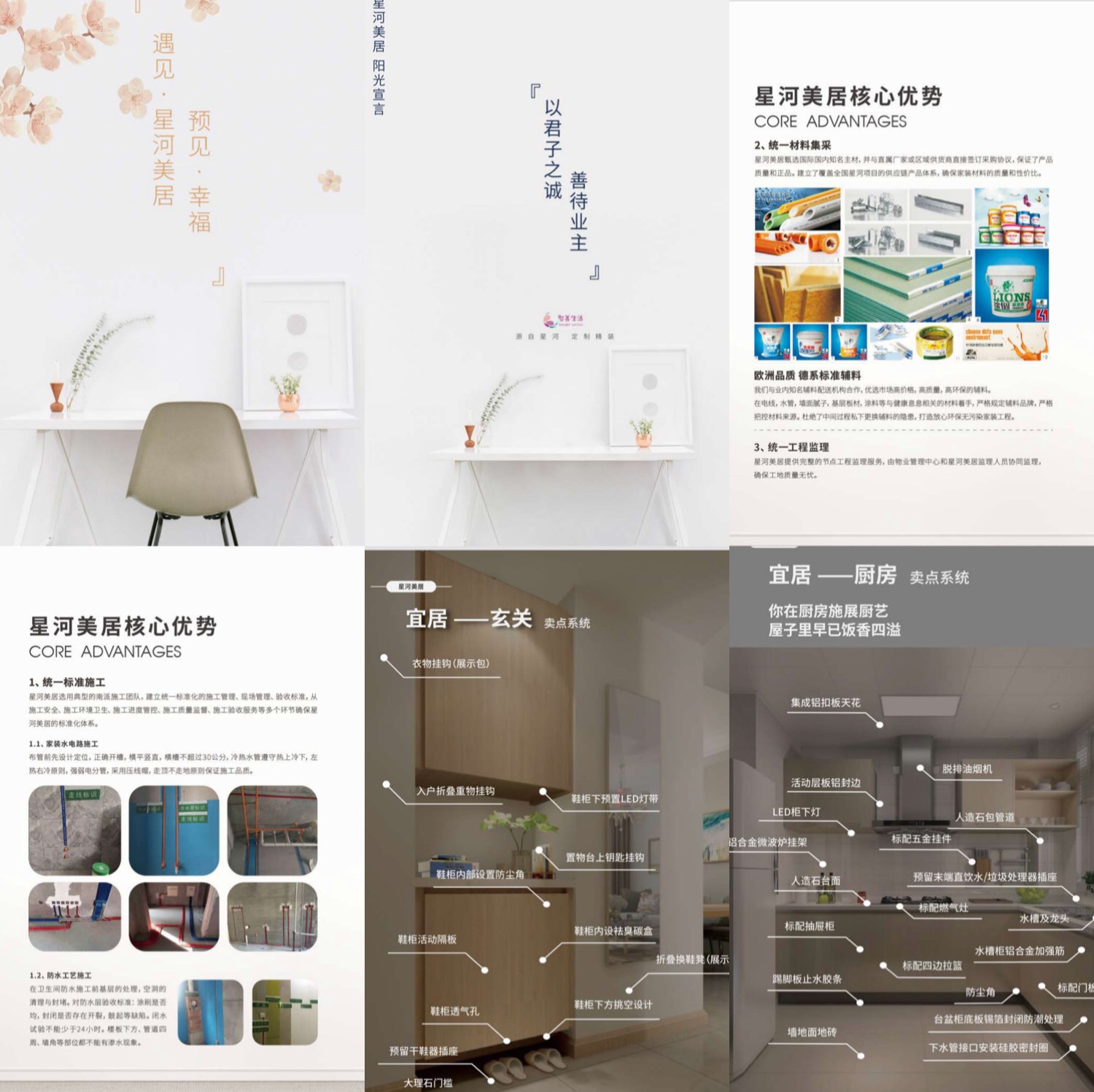 第二:统一材料集采。星河美居甄选国际国内知名主材,并与直属厂家或区域供货商直接签订采购协议,保证了产品质量和正品。建立了覆盖全国行和项目的供应链产品体系,确保家装材料的质量和性价比。各节点工程皆由物业管理处和星河美居中心协同监理、验收,避免业主装修过程中的隐性消费和质量问题。