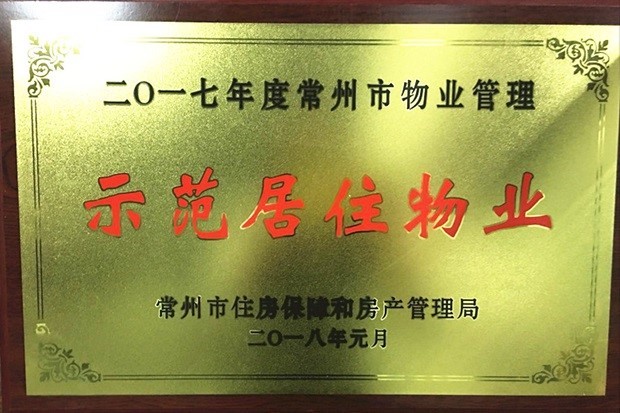 2018年4月常州市住房保障和房产管理局组织召开常州市物业管理会议,会上表彰了2017年度常州市物业管理市级示范项目,并颁发了奖项。