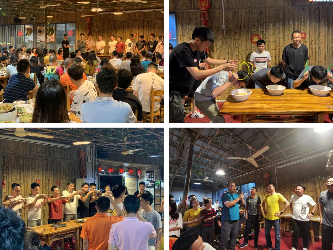 在用餐时刻,同时进行着精彩的游戏,伴随刺激的小组竞技PK,辨别真假酒、喝酒接力赛、面粉吹小球、撕纸大作战,现场各组团队使尽浑身解数,开启一场智力与战术的团队比拼。不仅增进同事之间的凝聚力,更让大家切身体会到星河浓厚的家文化氛围。
