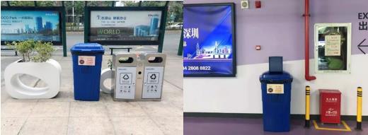 各写字楼项目均设置了口罩等防疫物资回收点,对废弃防护物资统一进行回收消毒处理,避免物资二次回收及次生污染风险。