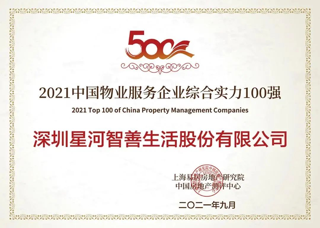 9月23日,由上海易居房地产研究院、中国房地产测评中心主办的“2021物业服务企业综合实力研究成果”发布会在成都隆重举行,星河智善生活集团总裁林培涛先生代表出席发布会。会上,发布了《2021中国物业服务企业综合实力研究报告》,星河智善生活凭借良好的经营情况、管理规模、盈利能力、优质的服务品质,于众多同行企业中脱颖而出,荣获“2021中国物业服务企业综合实力100强”、“2021中国品质物业服务领先企业”、“2021中国产业园区物业服务领先企业”三项行业大奖。